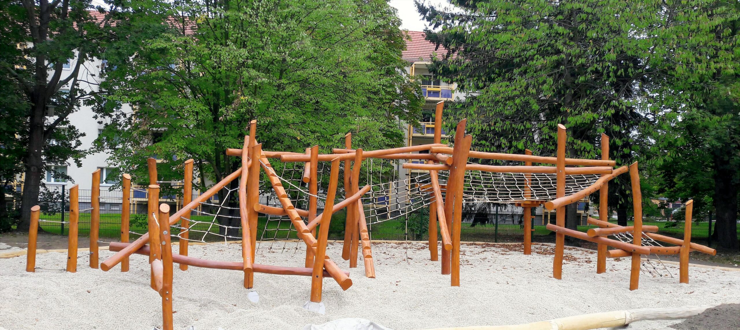 Die Kletteranlage Diesterweg ist ein vielseitiges und herausforderndes Spielgerät aus naturbelassener Robinie, das durch ihre organische Gestaltung und die abwechslungsreiche Ausstattung ein besonders intensives Spielerlebnis bietet. Sie fördert gleichermaßen Kraft, Koordination, Gleichgewichtssinn und Bewegungsfreude. Die offene, weitläufige Struktur ermöglicht eine gleichzeitige Nutzung durch viele Kinder und regt zu kreativem Spiel und sozialem Miteinander an.