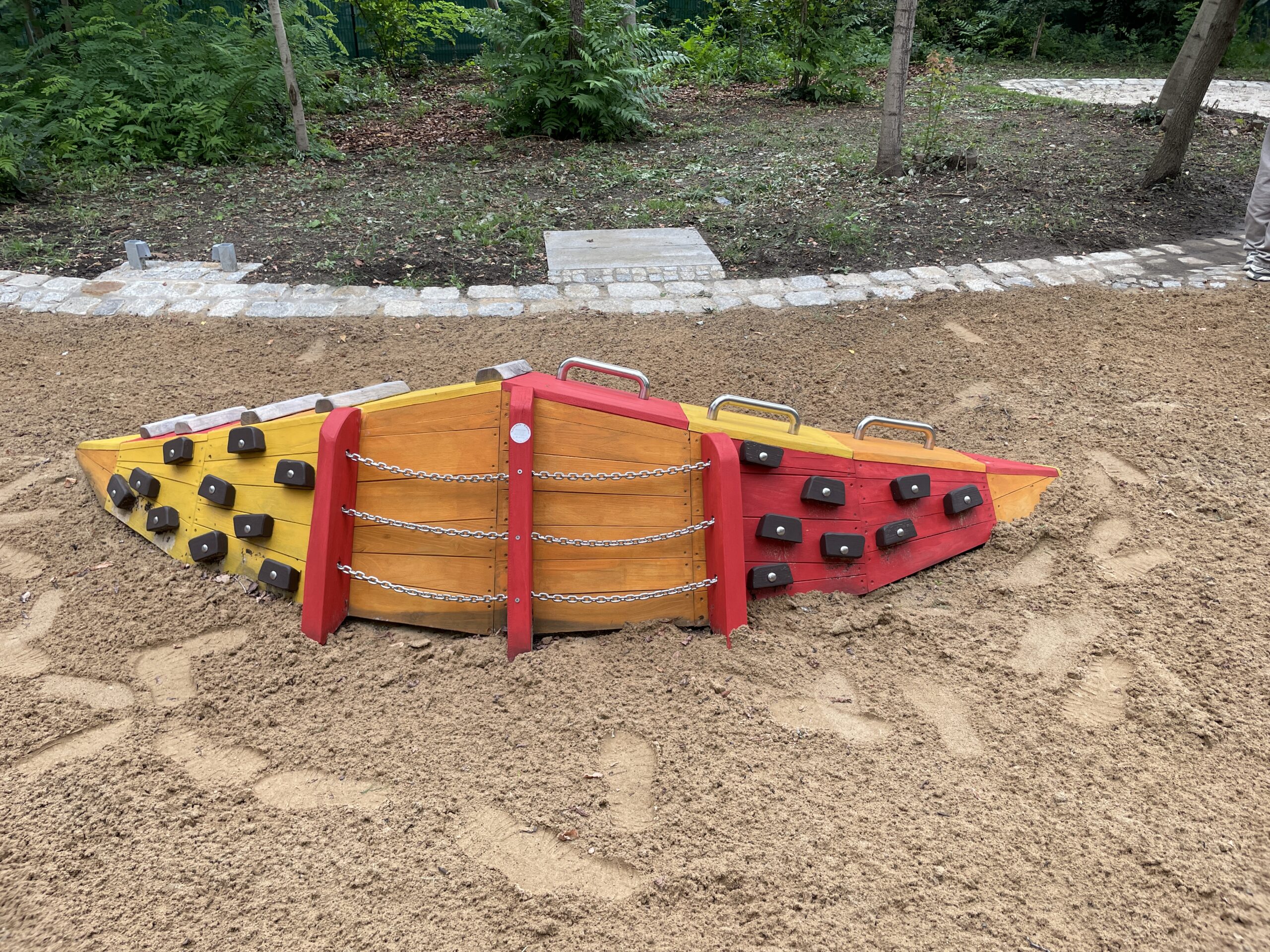 Neben der Kletteranlage findet man für die Kinder auch noch kleinere Spielmöglichkeiten, wie die Kletterschote und eine Wassermatschanlage.